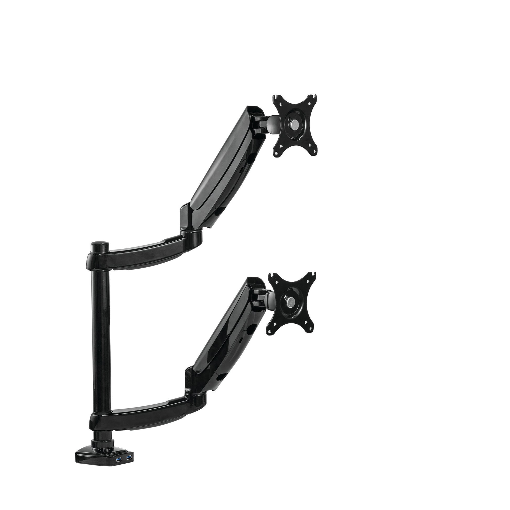 • Fully independent adjustable dual monitor arm with innovative gas spring technology providing effortless monitor adjustment