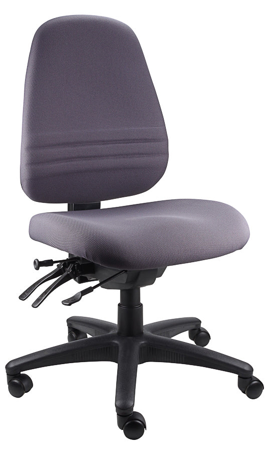 The Endeavour 103 Medium Back Ergonomic Office Task Desk Chair is a part of the ergonomic seating solutions and is classified as a medium back task chair. Perfect for the home or workplace. The Endeavour 103 is a top-end ergonomic chair providing support with multiple lever mechanisms to help adjust the seat for your very own comfort. The Endeavour 103 is a fully ergonomic clerical (with armrest) or typist (no armrests) chair. Available in Black, Olive, Blue, Red, Navy or Charcoal