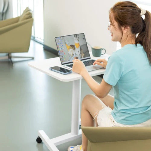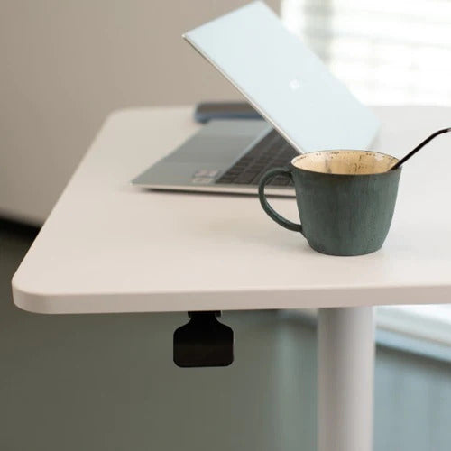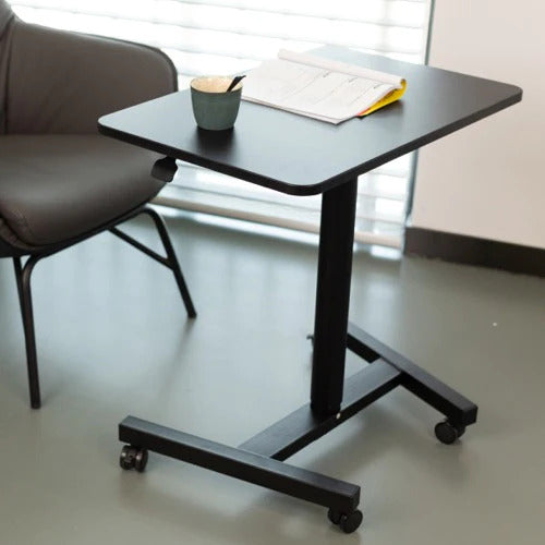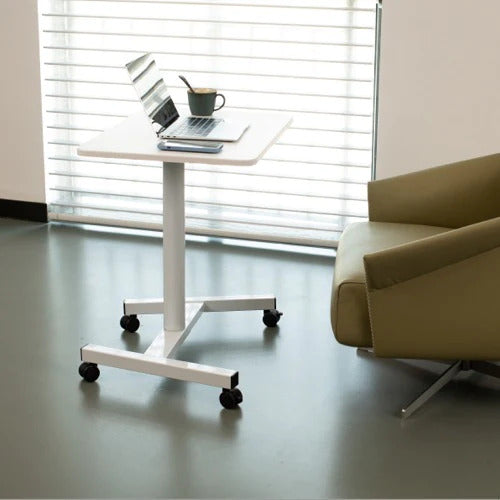 LIFTOFF is a super affordable sit-stand/lectern desk with a pneumatic adjustment lever to raise the desktop and has a base with 4 wheels (2 lockable) which makes it easy to manoeuvre. LIFTOFF is extremely sturdy with a desk surface large enough for a laptop, keyboard, mouse pad and even your cup of coffee!
