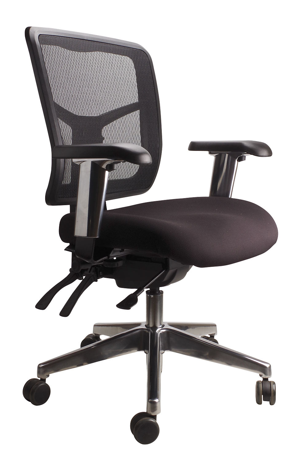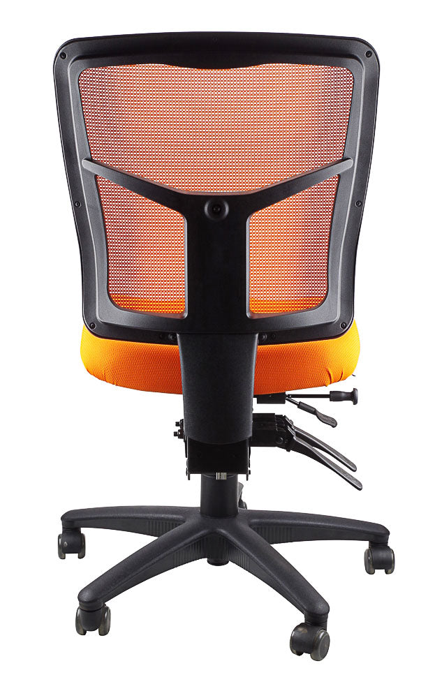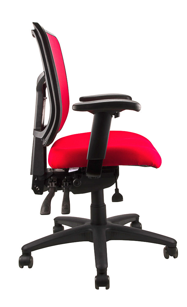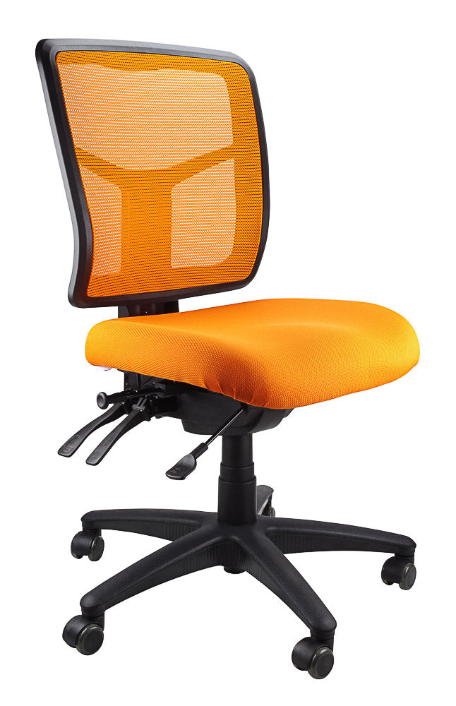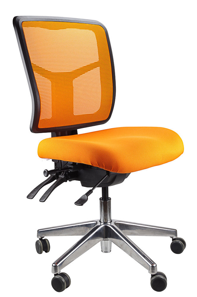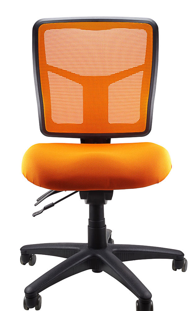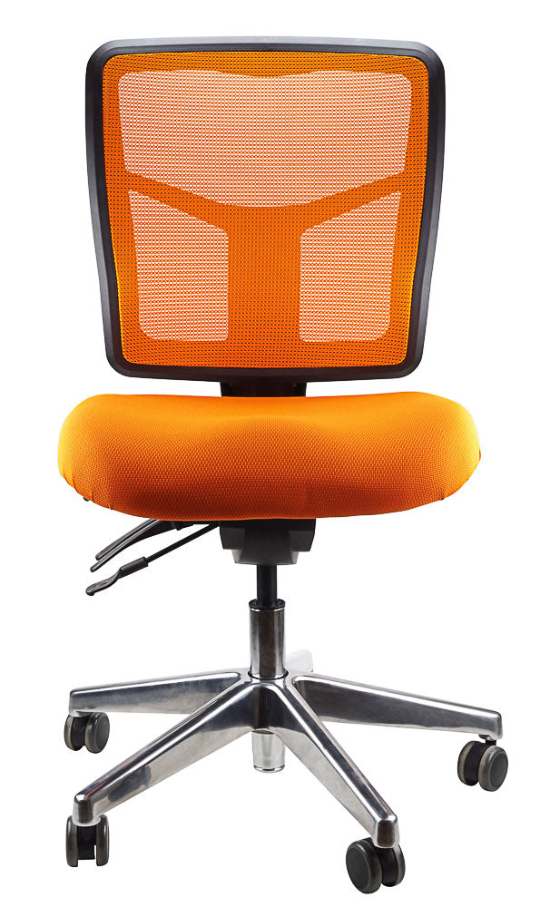 The Mirae Mesh Medium Back Task Office Desk Chair is a part of the ergonomic seating solutions and is classified as a fully ergonomic medium back task chair. Perfect for the home or workplace. The Mirae Mesh Medium Back is an ergonomic chair providing support with multiple lever mechanisms to help adjust the seat for your very own comfort. The Mirae Mesh Medium Back is a fully ergonomic clerical (with armrest) or typist (no armrests) chair. You have the option for either a black base or a polished base with the option to add matching armrests (black or polished). Available in 6 colours (Black, Red, Orange, Olive, Blue and Silver) with a fabric seat.