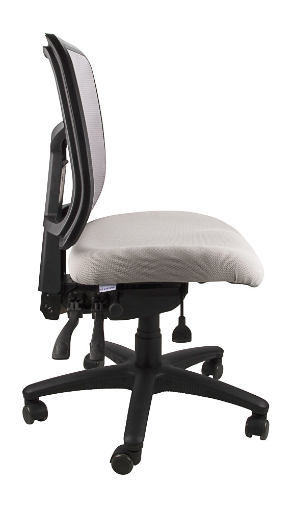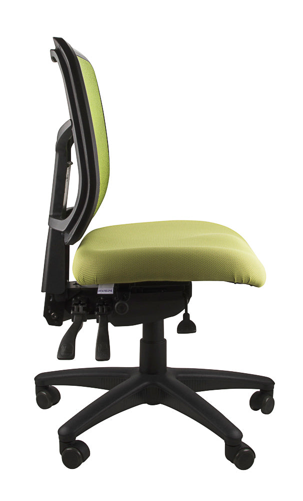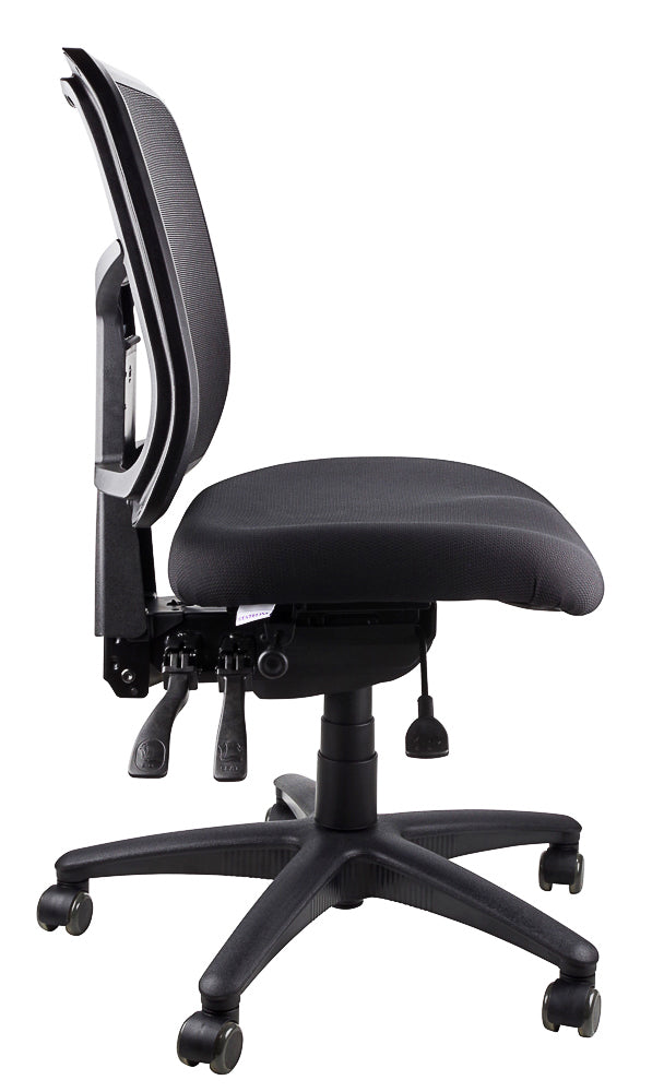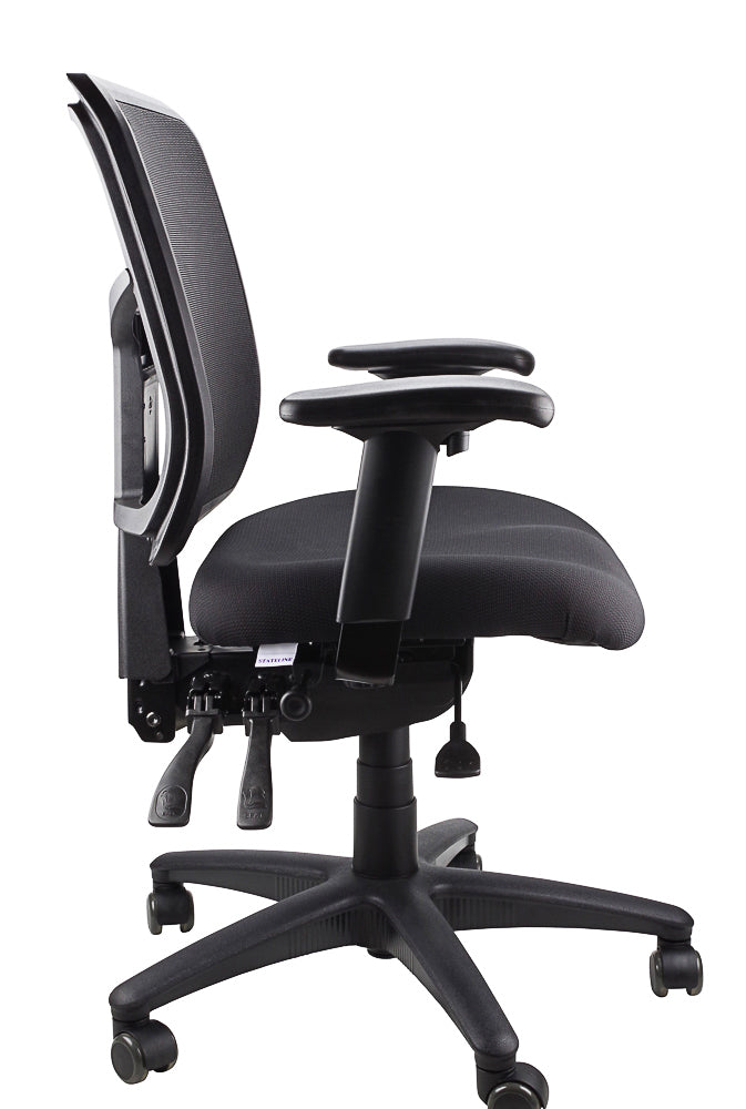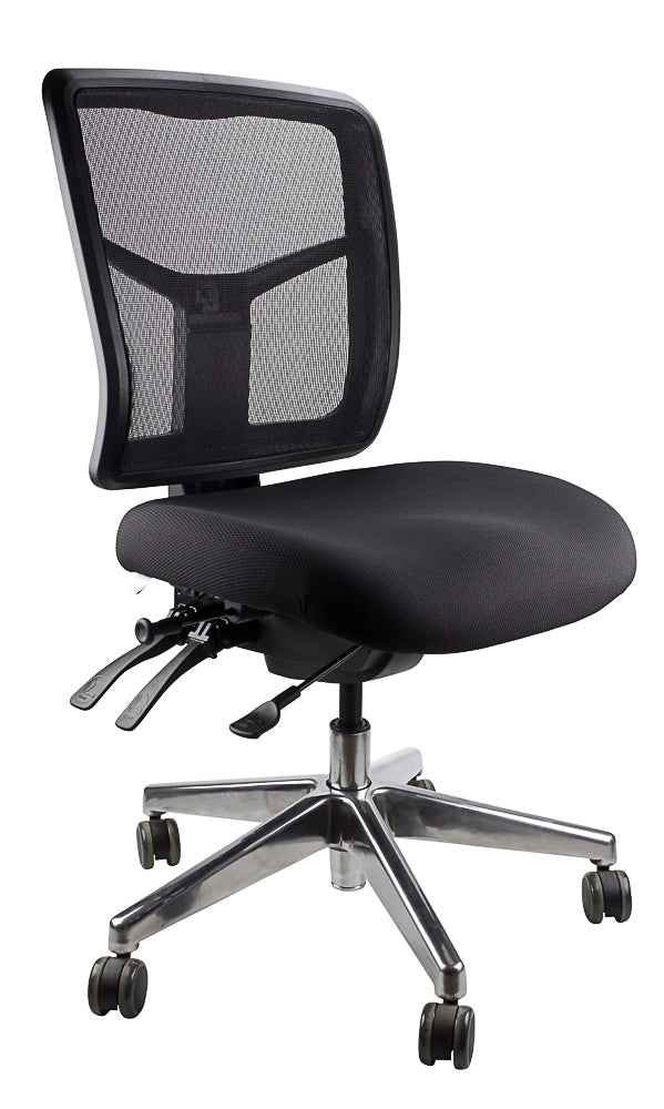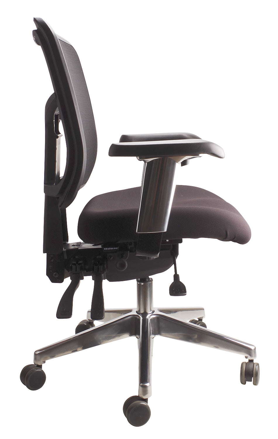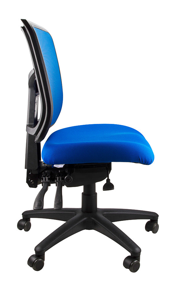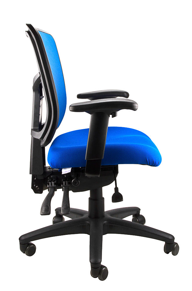 The Mirae Mesh Medium Back Task Office Desk Chair is a part of the ergonomic seating solutions and is classified as a fully ergonomic medium back task chair. Perfect for the home or workplace. The Mirae Mesh Medium Back is an ergonomic chair providing support with multiple lever mechanisms to help adjust the seat for your very own comfort. The Mirae Mesh Medium Back is a fully ergonomic clerical (with armrest) or typist (no armrests) chair. You have the option for either a black base or a polished base with the option to add matching armrests (black or polished). Available in 6 colours (Black, Red, Orange, Olive, Blue and Silver) with a fabric seat.